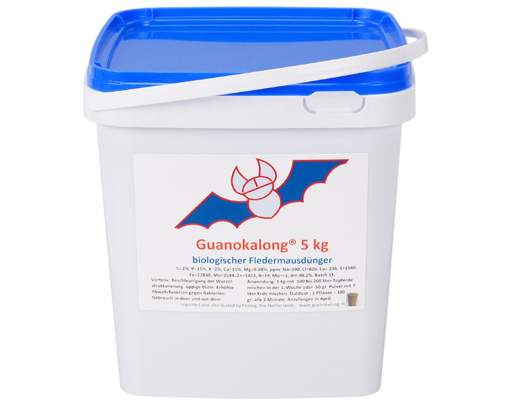 Guanokalong Pulver ist ein hochwertiger Naturdünger auf Basis von 100 % reinem Fledermaus-Guano. In fein gemahlener Form sorgt er für eine besonders schnelle Nährstofffreisetzung und ist ideal für alle Pflanzen in der Wachstums- und Blütephase. Der hohe Gehalt an natürlichem Phosphor und Kalzium fördert kräftige Wurzeln, vitale Blüten und eine aromatische Ernte – ganz ohne chemische Zusätze.
